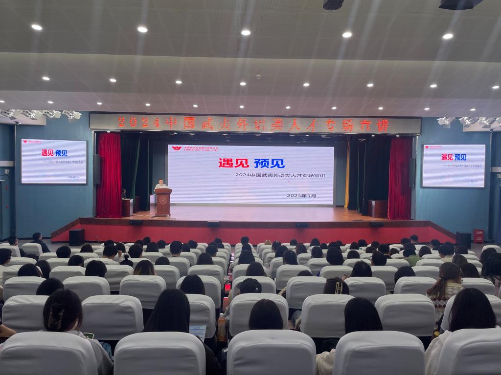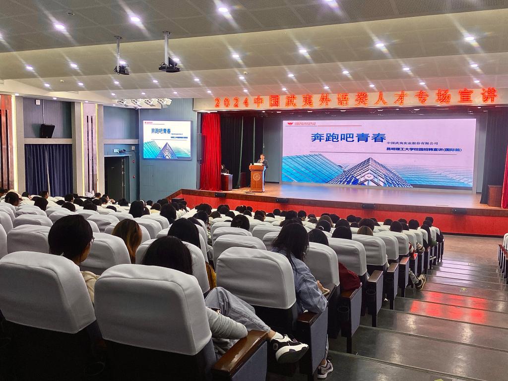 邀请中国武夷实业股份有限公司(以下简称“中国武夷”)在公教楼小剧场开展海外就业经验分享会暨专场宣讲会。院党委副书记邱清遐,本科生及研究生就业指导教师,外语类本科生、研究生,以及来自其他杏吧原创