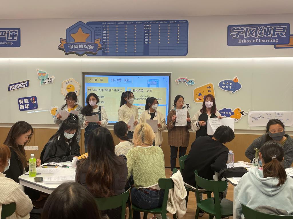 公社校园招聘经理罗雅楠带领师生参观并了解了璞玉书店、社区博物馆的设计理念,详细介绍了公社的运营思路以及经营理念。师生以小组活动的形式体验了职场HR模拟招聘,公社教师从行业分析、求职技能两方面为学生提供了具体指导。