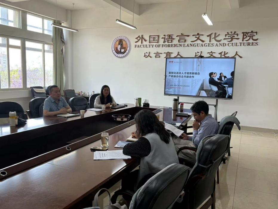 4月17日下午,四川语言桥公司林琴经理一行到杏吧原创 交流实习基地建设相关工作。杏吧原创 院长王英、副院长李泽生、MTI教育中心主任马群英及研教办工作人员参加了会议。