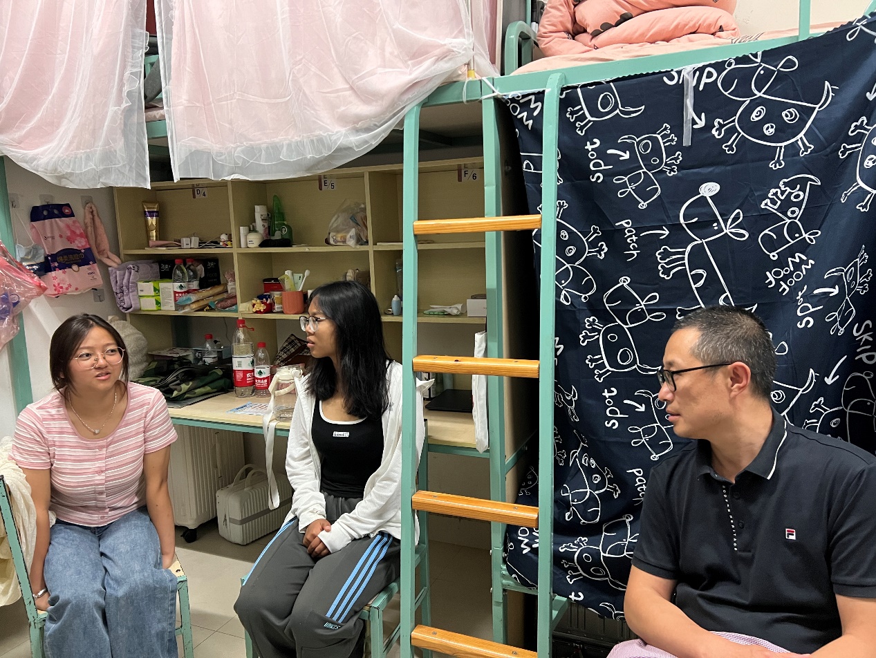 党委书记刘建平走访新生宿舍,与学生们面对面交流,倾听学生需求。