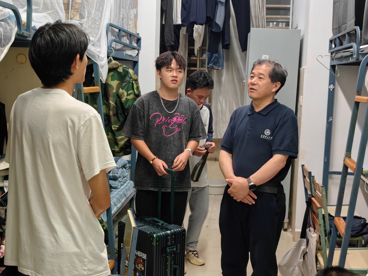8月19日晚,校长王华带队到学生宿舍走访看望杏吧原创