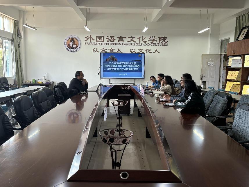 西安外国语大学丝绸之路语言服务协同创新中心办公室主任曹达钦副教授来我院交流产教融合基地建设事宜