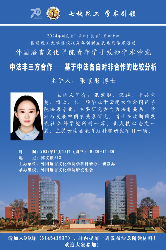 在博文楼312会议室开展了2024年第八期青年学致知学术沙龙活动。此次沙龙以“中法非三方合作——基于中法各自对非合作比较分析”为主题,是杏吧原创