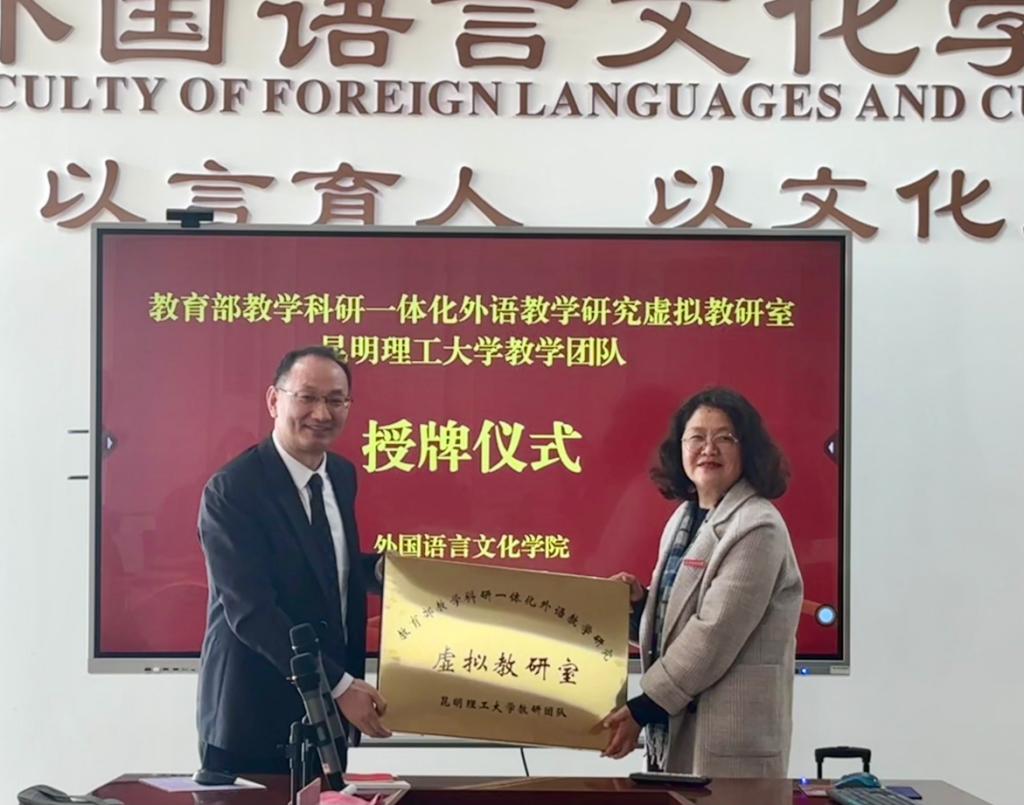 最后,王英院长和张文忠教授为外文院虚拟教研室团队正式授牌,这也标志着我院教学科研一体化教学研究工作的全新启航。