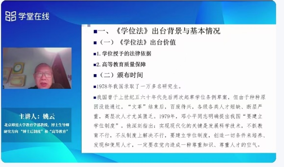 姚云详细分析了学校实施《学位法》面临的挑战和应对策略。在介绍学科专业调整背景的基础上,分析了学科与专业的区分及学科与专业调整的历程,并用实际案例讲析了分类培养面临的挑战和应对策略。姚云还从宏观政策解读入手,强调了《学位法》的重要意义,并在此基础上突出了分类培养的必要性,同时就如何应对分类培养中面临的问题提供了指导。