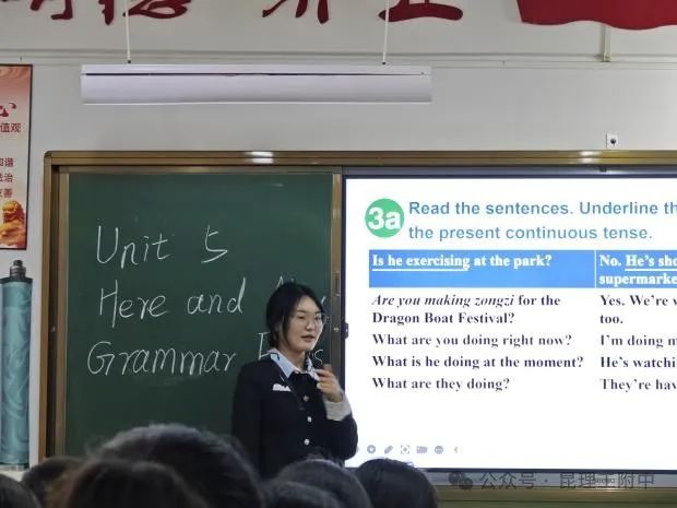 许天媛老师执教的内容为2025秋新教材人教版七年级下册Unit5 Here and Now语法课时。本堂课围绕“现在进行时”主题,以“观察归纳—规则讲解—情境应用”为主线展开。通过例句分析提炼结构、图表梳理语法构成、填空与模仿练习强化运用,结合角色扮演及生活化写作任务巩固知识。优点:多样化练习(填空、模仿、写作)提升语法应用能力,生活化任务(明信片写作)增强语境迁移。改进方向:补充真实语料(如视频、对话),深化情境理解,实现迁移运用。