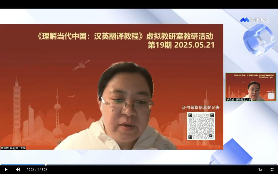 5月21日,教育部《理解当代中国:汉英翻译教程》虚拟教研室举办第19期线上教研活动。杏吧原创