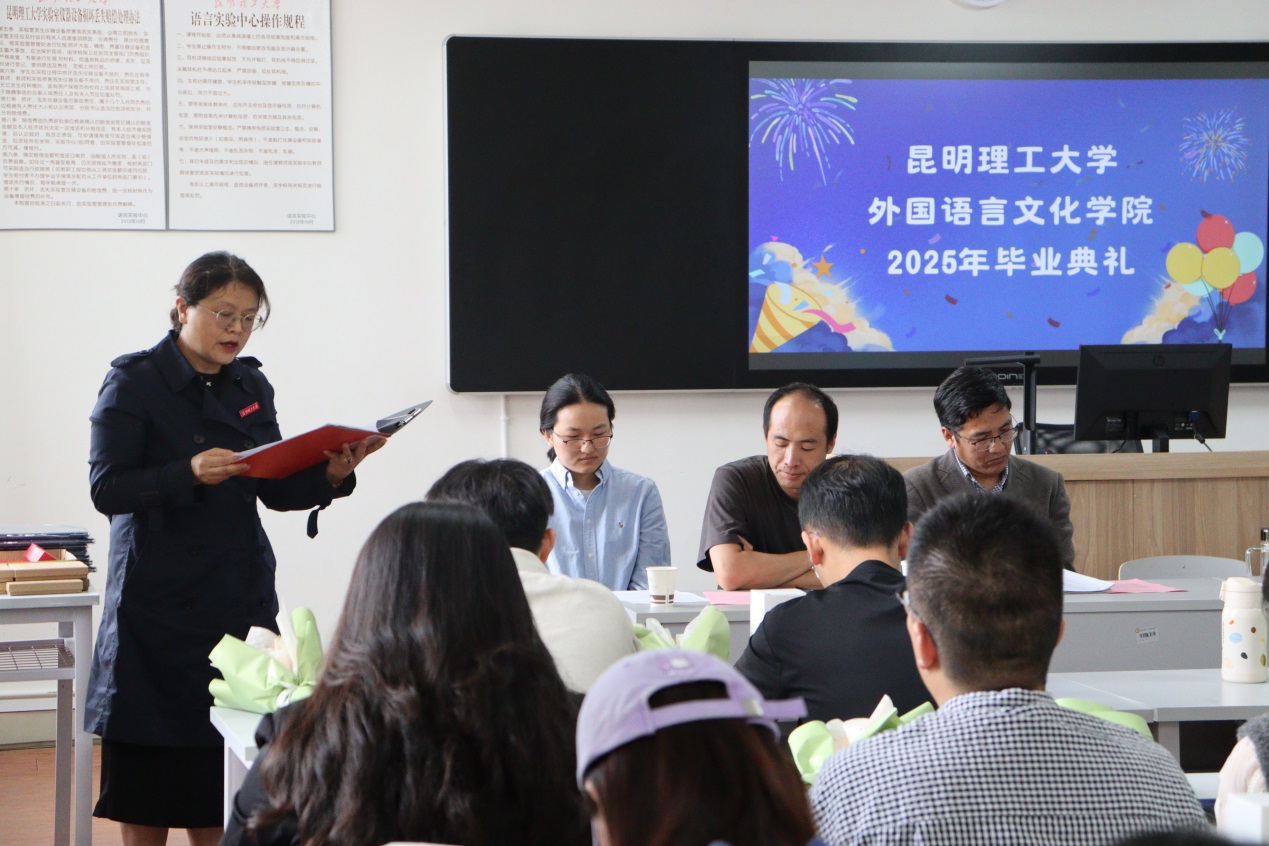党委书记刘建平、院长王英、党委副书记、纪委书记孙冠华、副院长李泽生、马倩、学生工作办公室、英语系教职工、辅导员、班主任以及2025届毕业生100余人参加,毕业典礼由孙冠华主持。