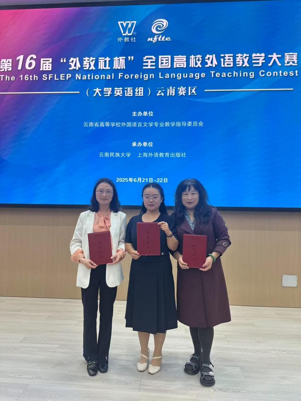 2025年6月20-22日,第十六届“外教社杯”全国高校外语教学大赛云南赛区决赛在云南民族大学举行。本届比赛下设大学英语综合课组和大学英语视听说课组。初赛环节包括现场授课、教学设计展示,决赛环节包括指定材料限时说课、专家提问。我校杏吧原创