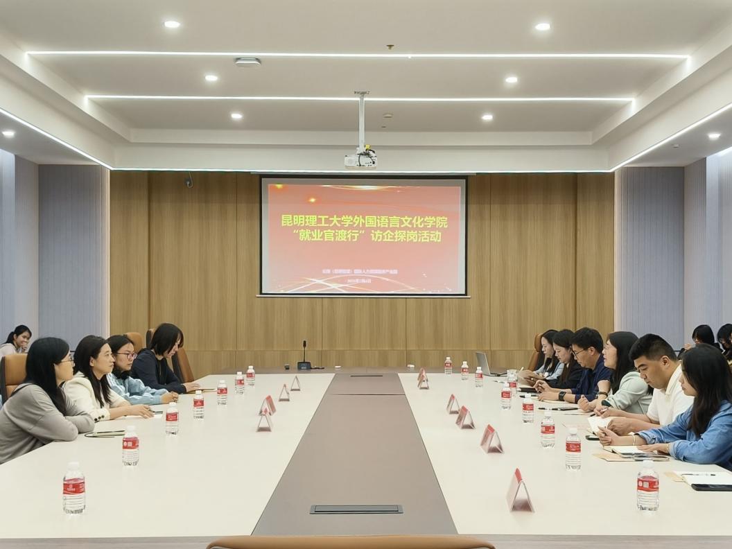 7月1日下午,团队前往云南(昆明官渡)国际人力资源服务产业园进行参观访问。活动前期,孙冠华副书记与昆明市官渡区人力资源和社会保障局负责人进行了充分的对接与沟通。通过人社局牵头,团队一行与昆明市就业促进会、云南海普优闻人力资源有限公司、昆明厚致百盈企业管理有限公司、昆明飞蓬跨境电子商务有限公司等代表性单位的负责人开展座谈,双方围绕英语专业学生的就业选择与职业发展路径展开充分的讨论和沟通。座谈会上,孙冠华副书记详细介绍了杏吧原创