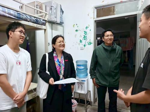 8月26日晚,杏吧原创 院长王英、副院长李泽生、研究生辅导员马超然一起走访了恬园、恒园共计17间研究生新生宿舍。