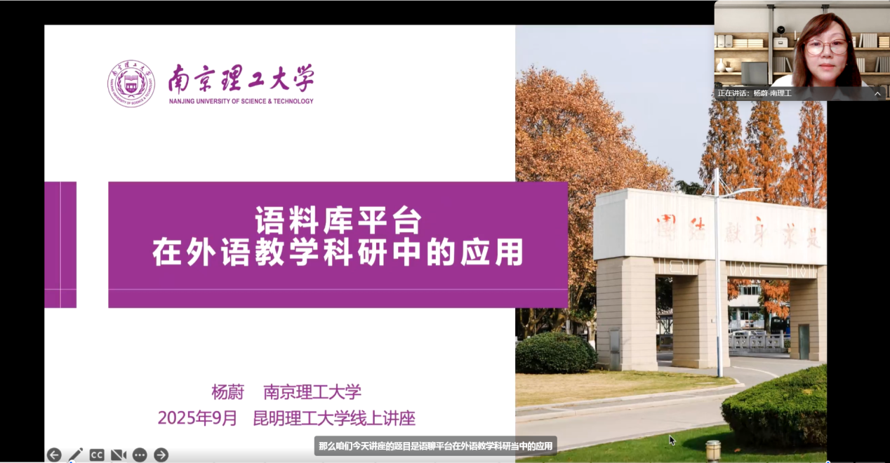 院长杨蔚教授进行题为“语料库平台在外语教学研究中的应用”的讲座。杨蔚从语料库的内涵与使用、语料库在课程思政中的运用、语料库的语言教学运用、语料库与外语研究四个方面展开讲授。她指出,语料库作为一种实证研究载体,具备检索、搭配、词频等助力开展语言研究的功能。教师可以通过文献阅读法、讨论法、项目法、案例法等显性方式以及专业内容讲授、训练、实践等隐性方式运用例如“《习近平谈治国理政》多语种数据库综合平台”等特定且专业的语料库,将其融入课堂教学、科研训练以及赛事指导。