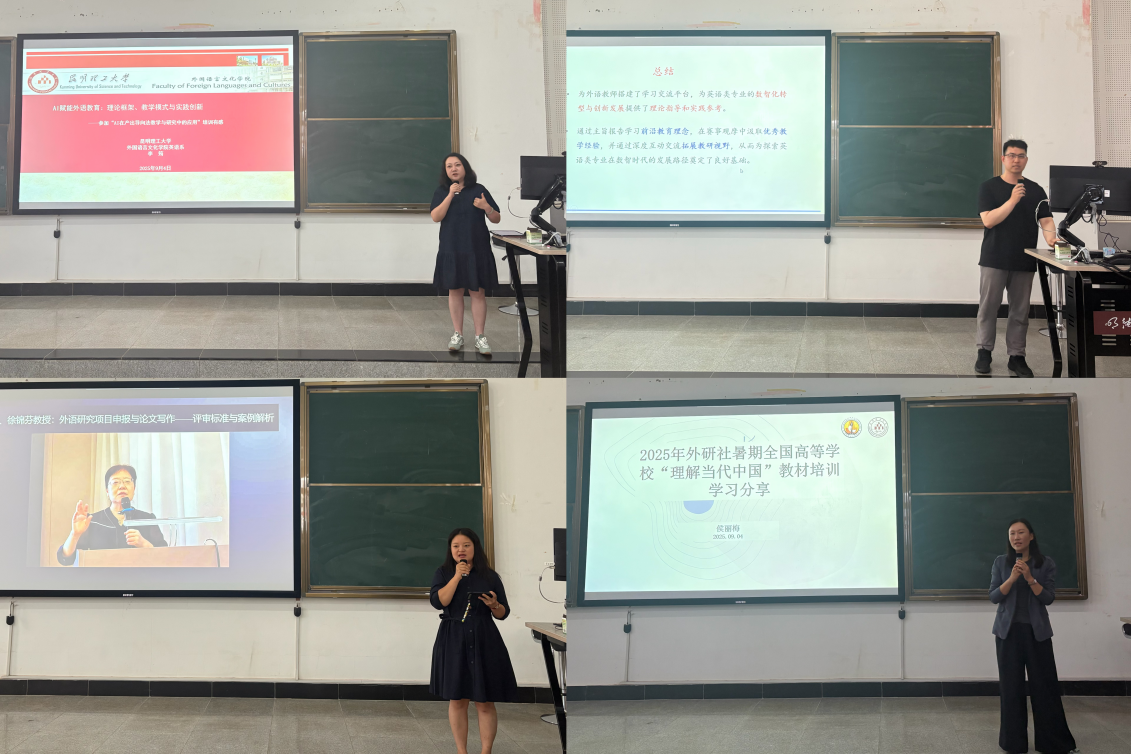 英语系胡权分享了参加“全国高校英语类专业教学发展与创新研修班”的体会,该研修班以“数智时代外语课程育人与新专业发展”为主题,包括主旨报告、教学之星大赛培训及创新发展交流三个环节,涵盖专业建设、课程思政和数智平台应用等内容。