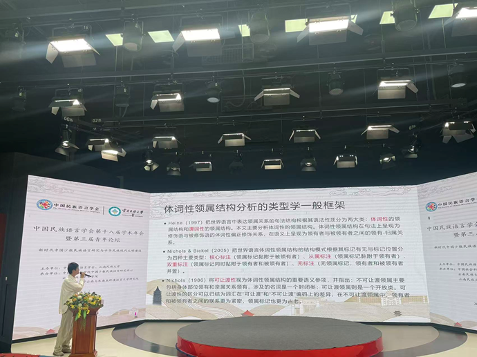 在分组讨论环节,徐源培博士在汉藏语组做了题为“泰语的体词性领属结构和领属标记”的学术报告。该研究以现代泰语为研究对象,借助结构主义理论功能与分布相结合的研究方法,对泰语的体词性领属结构做了共时描写分析,探讨了泰语体词性领属结构形式与功能的对应关系,揭示了泰语体词性领属标记的隐现规律,为领属范畴的类型学理论等研究提供了基于事实考察的理论创新和可供验证的实证依据。