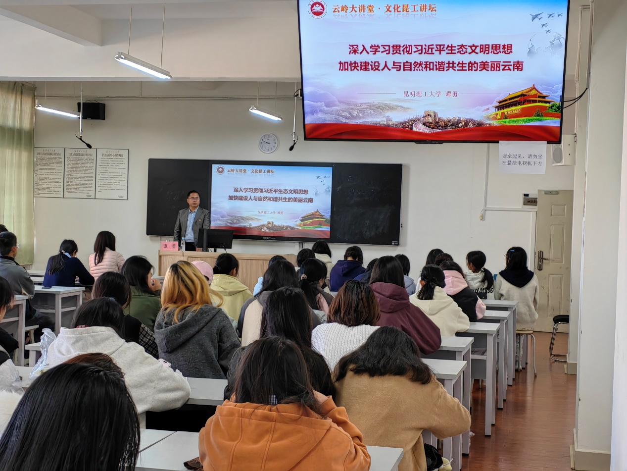 在呈贡校区博文楼403教室承办云岭大讲堂·文化昆工讲坛第一百一十六讲,邀请校党委宣传部副部长谭勇副教授作题为“深入学习贯彻习近平生态文明思想加快建设人与自然和谐共生的美丽云南”专题讲座。杏吧原创