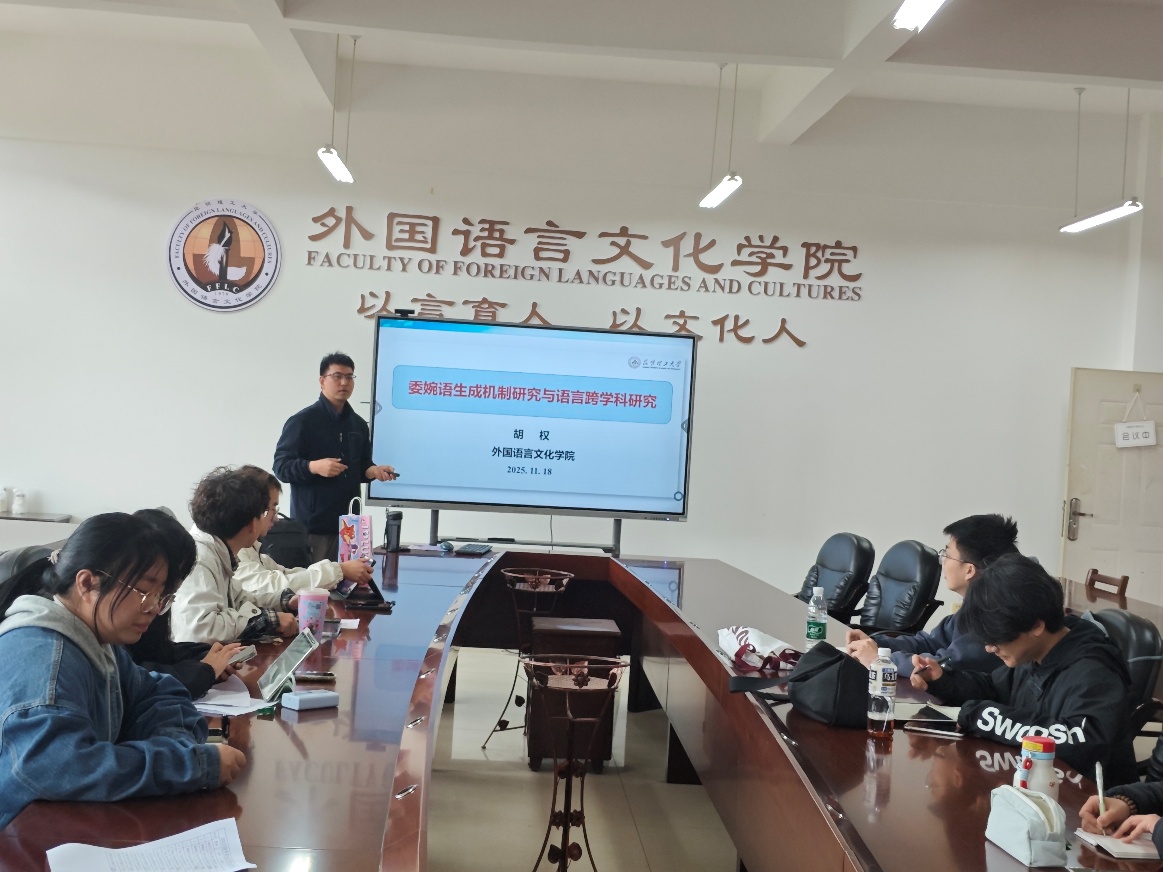 胡权博士担任主讲人,2025级全体外国语言文学专业学术型硕士研究生参加。