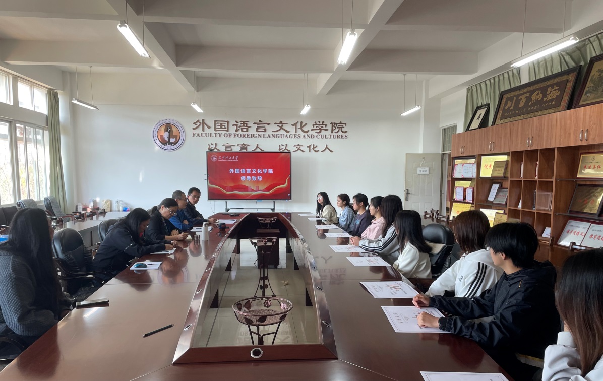 严格评审,英语专业本科生谢丽娜、蒋芮荣获文江一等奖学金,李智丹、杨绘苹、杨诗怡、傅思源获文江二等奖学金;英语专业本科生蒙钰、高希锦、张么吉获得新元助学金。与会领导为获奖学生颁发证书。