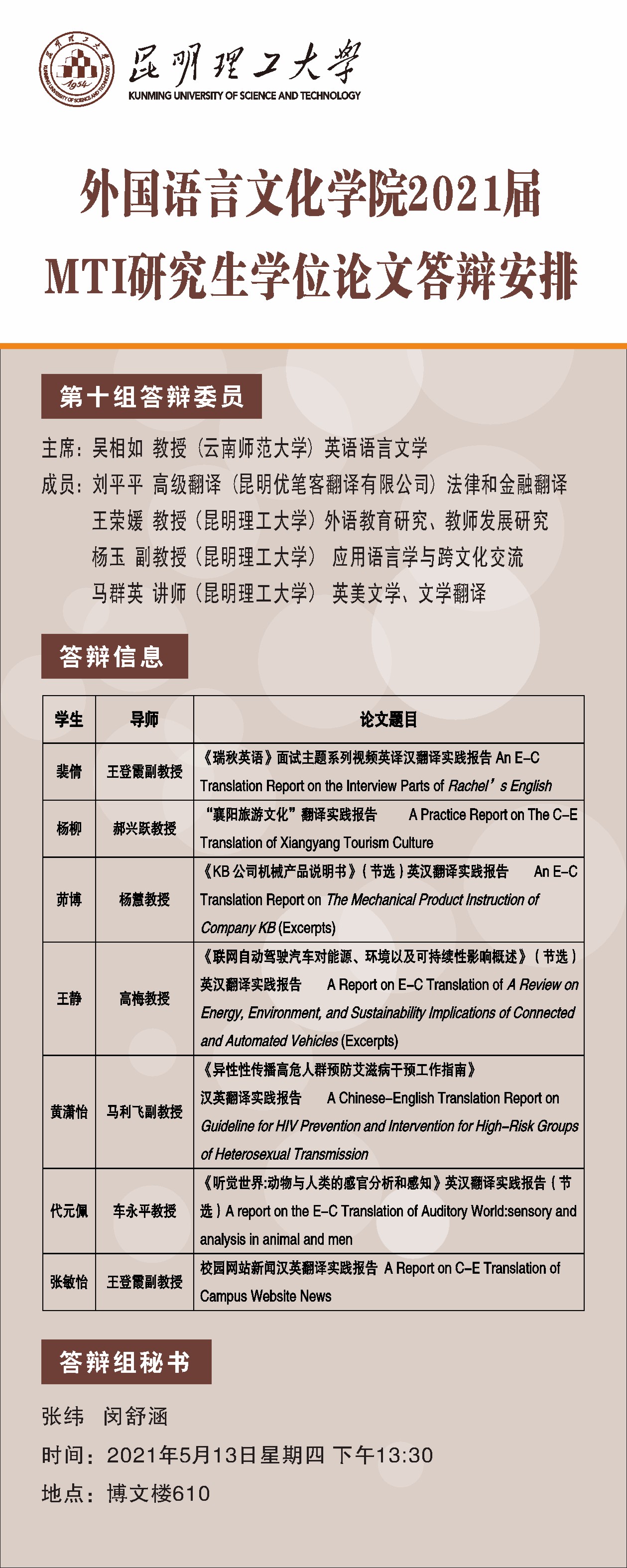 杏吧原创 2021届MTI研究生学位论文答辩公示(第十组)