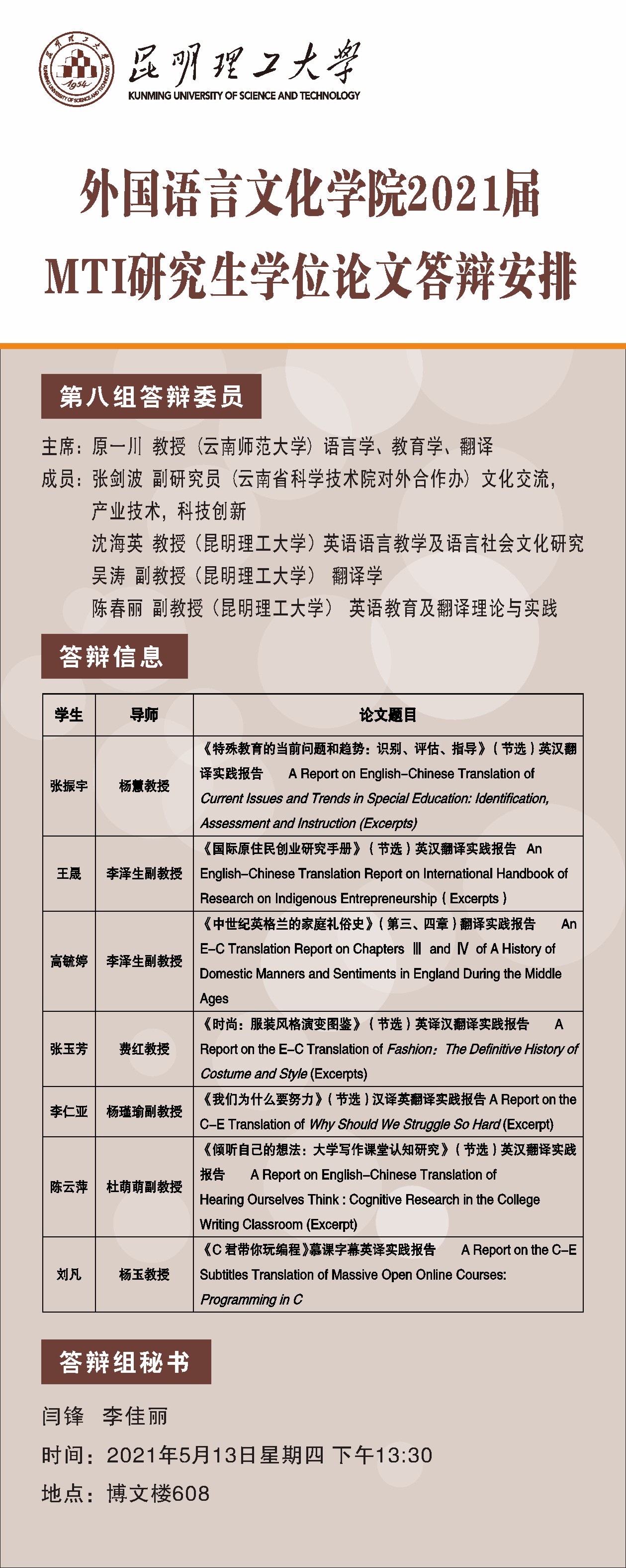 杏吧原创 2021届MTI研究生学位论文答辩公示(第八组)