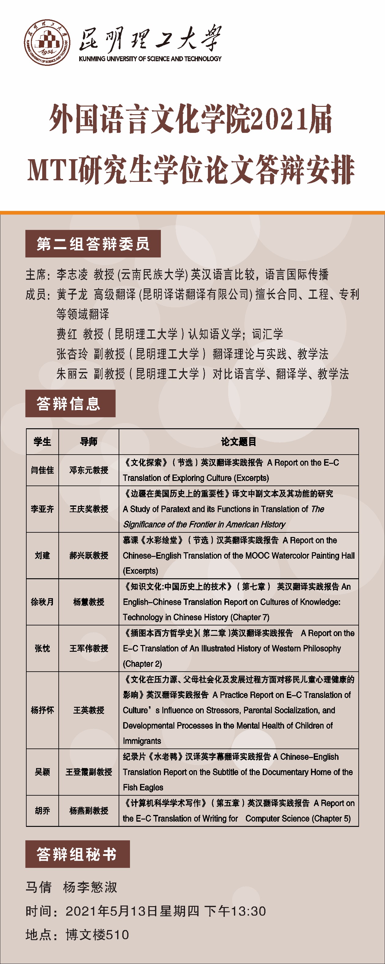 杏吧原创 2021届MTI研究生学位论文答辩公示(第二组)