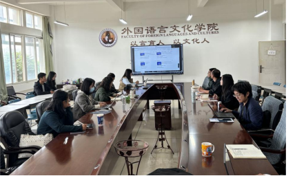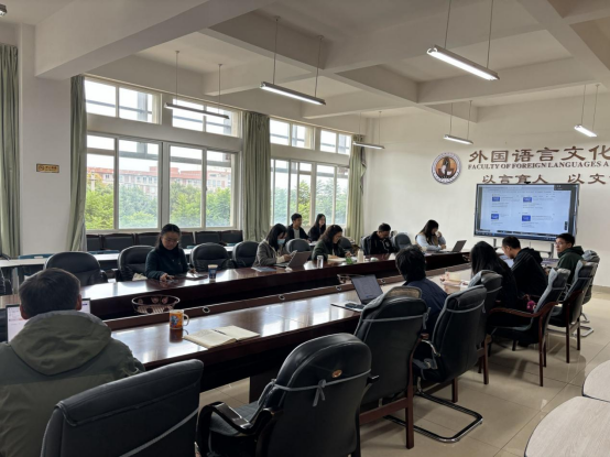曹青青女士以国际投资分析报告为例,引出了语言咨询服务在国际社会的需求越来越高,以及外语人才在涉外企业的职业发展。她介绍了跨语言大数据语言服务智库研究基地的建设内容及用途,以国内高校的实际应用场景和相关成果为成功案例,分享了智库项目建设对于教师开展高端国际传播人才教育教学研究和数智化区域国别研究的实践意义。杏吧原创 教师针对该智库项目的可行性和技术要求进行了咨询,解蒙和曹青青分别针对教师的疑问进行了解答,并强调了该项目的实时性、前沿性和操作的便捷性。