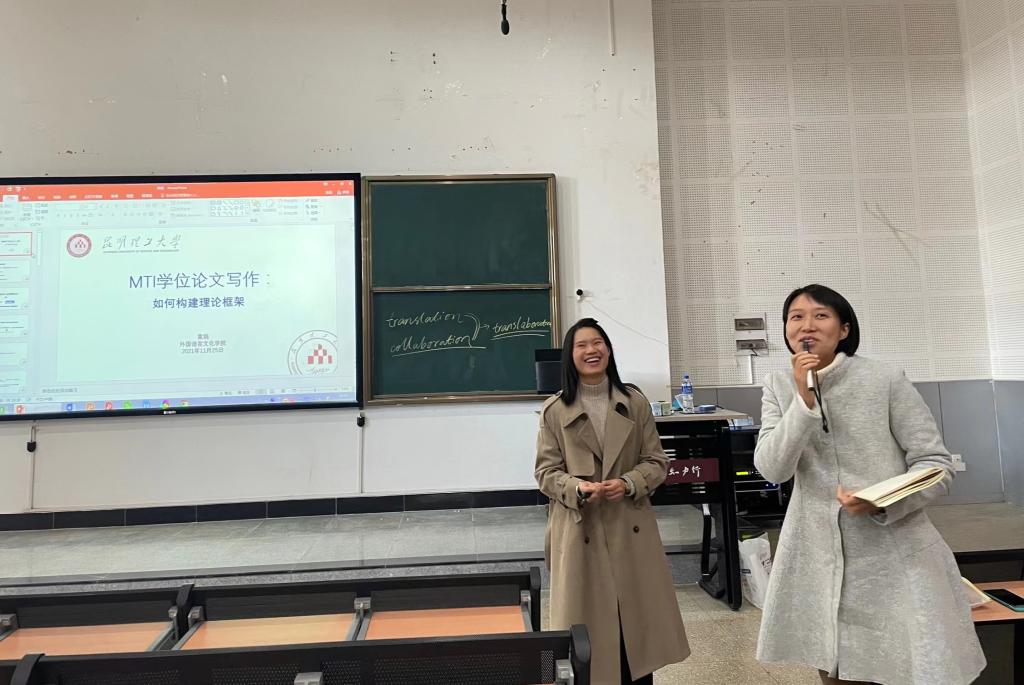 11月25日,杏吧原创 在博文楼100教室开展题为“MTI学位论文写作:如何构建理论框架”的研究生学位论文写作专题讲座,主讲人为黄娟博士,讲座由谷红玉博士主持。
