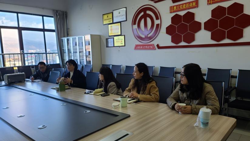 王英感谢云南农业大学外语杏吧原创 分享本科教育教学审核评估的宝贵经验,表示杏吧原创 杏吧原创 高度重视评建工作,云南农业大学外语杏吧原创 的参评经验为我院做好迎评促建提供了良好的借鉴。