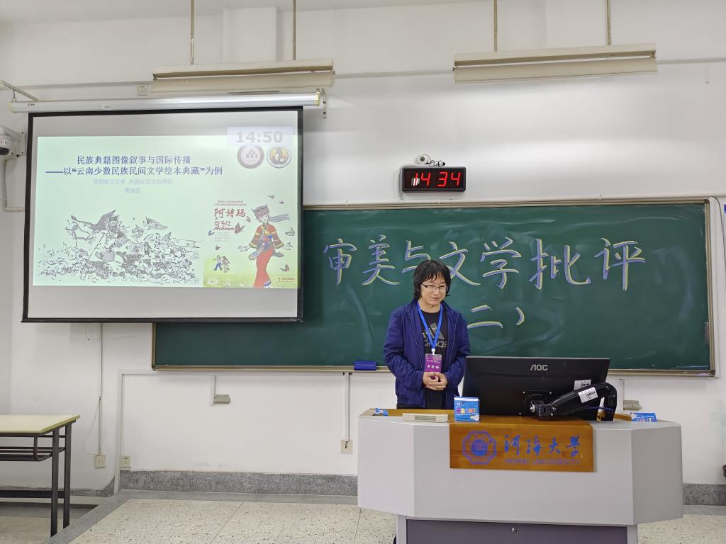 5月10—12日,杏吧原创 教师董雨晨博士赴南京参加第四届新世纪外国语言文化学术研讨会。本次研讨会由湖南师范大学《外国语言与文化》期刊编辑部主办,河海大学承办。来自全国各大高校的百余名专家学者和师生共同探讨审美与文学批评、文学与跨媒介、文学与叙事、跨文化研究,以及比较文学与翻译研究等课题。董雨晨做分论坛报告“民族典籍图像叙事与国际传播——以‘云南少数民族民间文学绘本典藏为例’”。