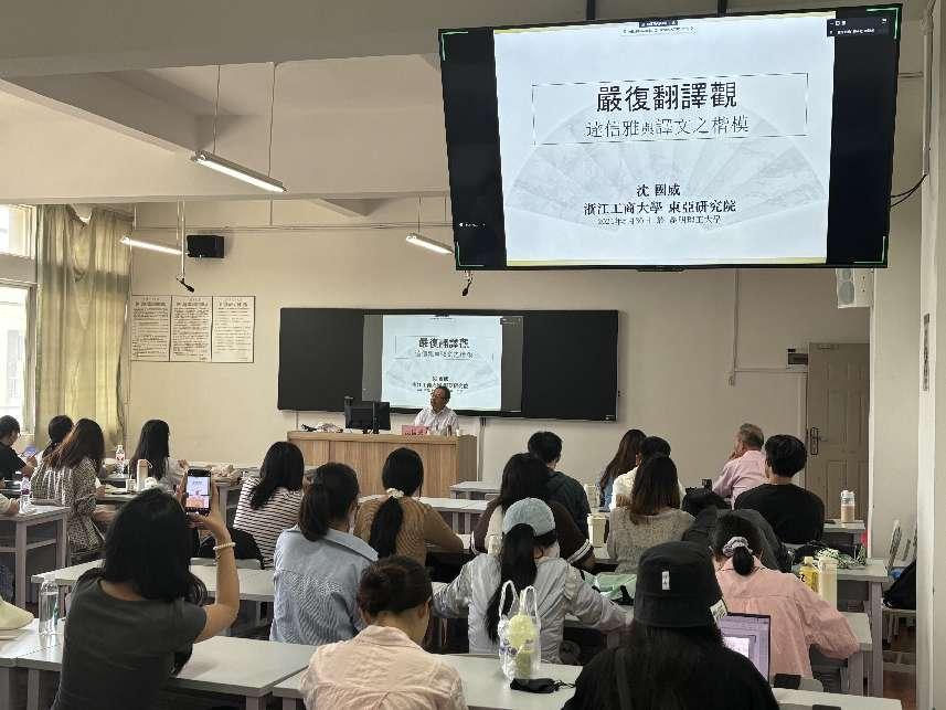 邀请浙江工商大学特聘教授沈国威开展以“严复翻译观——达信雅与译文之楷模”为主题的讲座。讲座在博文楼403教室举行,由李泽生副院长主持,杏吧原创