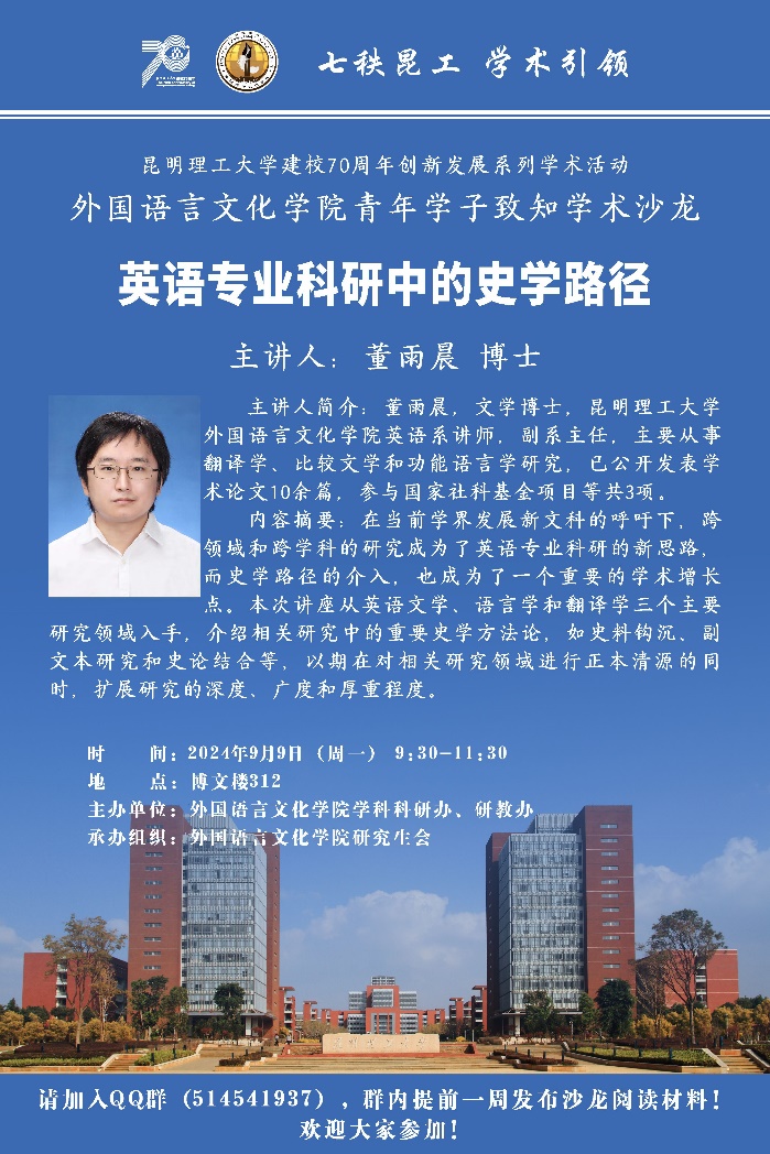 在博文楼312会议室开展了2024年第六期青年学子致知学术沙龙活动。此次沙龙以“英语专业科研中的史学路径”为主题,特邀杏吧原创