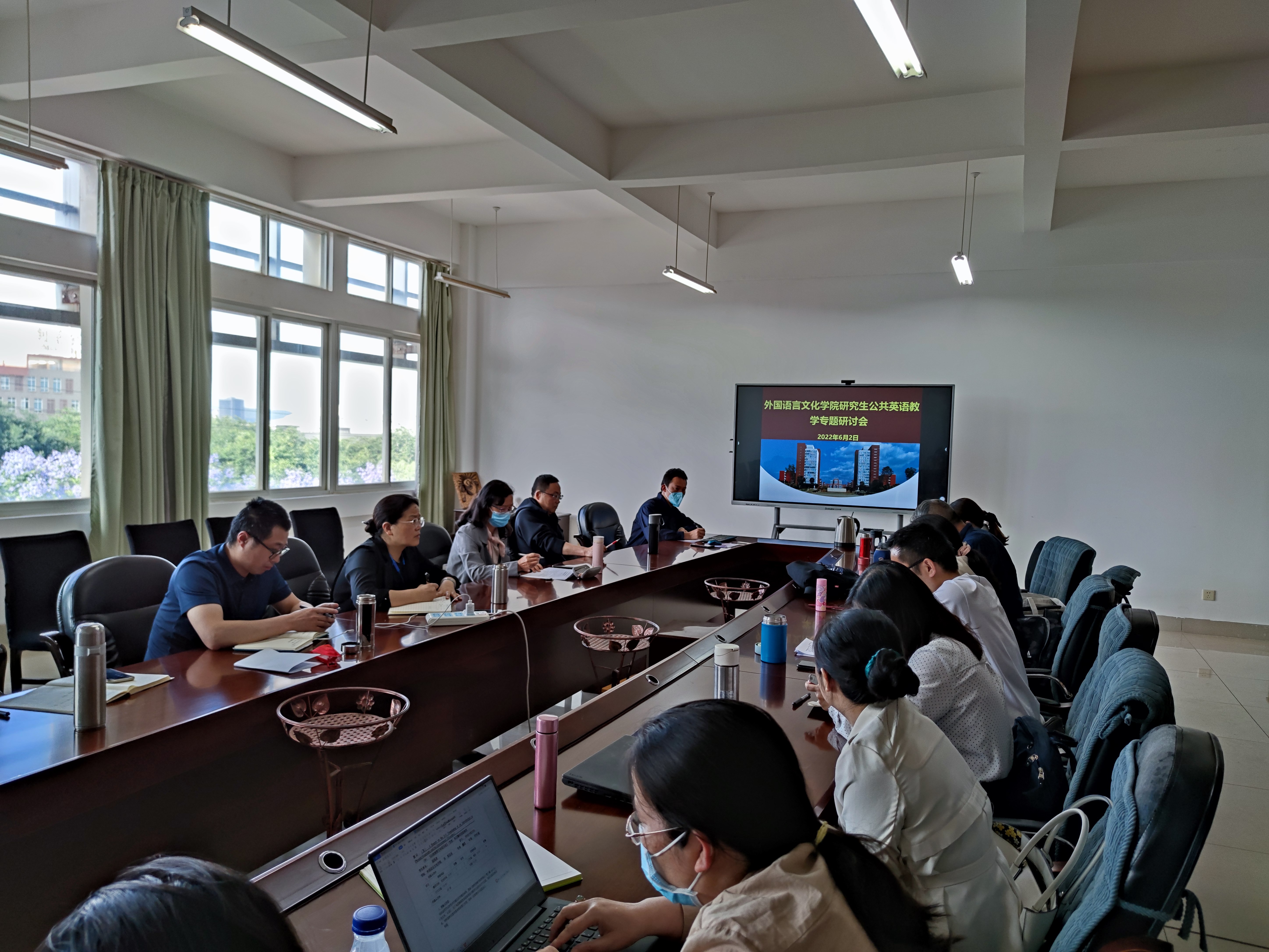 首先研究生公共英语教研部的教师们结合参加“2022年(第八届)全国研究生英语教学与发展论坛”的收获逐一交流了关于如何提升研究生英语教学的质量的思考和想法,老师们围绕如何满足学生差别化的需求、如何更好利用线上资源、如何加强课程思政及融入人文教育等提出了具体的建议。研究生公共英语教研部主任梁庆峰老师在老师们交流的基础上,围绕研究生公共英语教学的目标、定位和课程体系等,汇报了下一步工作思路。