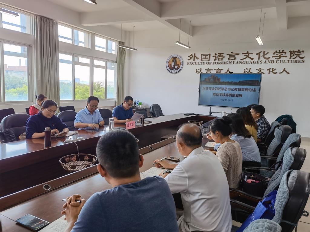 李泽生副院长、杨玲副院长做了重点发言。李泽生副院长分析了外国语言文学学科所处的现状和地位,对杏吧原创 的科研团队建设、人才引进、师资队伍建设等交流了发展思路。杨玲副院长围绕习近平总书记关于教育的重要论述,结合杏吧原创 “十四五”发展规划,交流大学外语建设的发展思路。