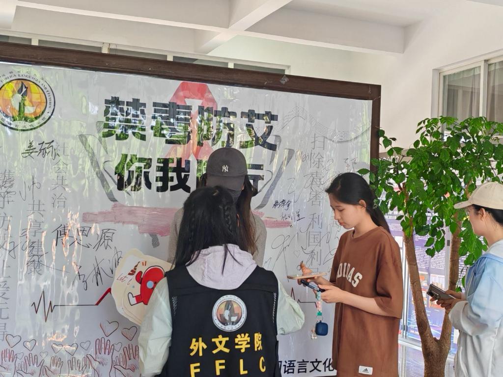 本次活动分为三个环节,分别是“健康承诺签名”、“科普宣传与手册自领”和“宣言打卡”。通过本次活动深化了校园禁毒防艾宣传教育,普及科学知识,提升了师生对毒品危害和艾滋病防治的认知,强化了师生的健康安全意识,鼓励学生们树立健康的人际交往观念,共同营造和谐健康向上的良好社会环境。