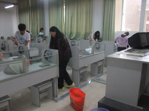 活动内容主要是清扫博文楼一楼和二楼的教学楼,将同学未带走的垃圾清理干净,并负责楼面及教室整洁干净。打扫期间,六到七人负责一间教室,分别负责擦走廊上的瓷砖,清扫教室地面,排齐桌椅,擦桌面及窗台等工作。同学们都非常积极的参与其中,认真的完成了所分配的任务,即使是看起来貌似十分柔弱的女同学们,也干劲十足,从打扫到处理垃圾都是自己独立完成,丝毫不逊色于男生,而打扫走廊的同学也十分的一丝不苟,即使是细小到灰尘也一样清扫的干干净净。