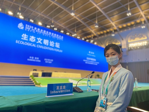 刘一霖、赵丽妍、陈筱婷三位同学加入的是会议综合组,主要负责的是为生态文明论坛相关活动提供志愿服务。