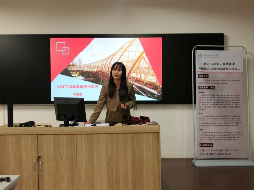 研究生会2023年10月25日在博文楼403举行CATTI备考经验交流沙龙,本次活动为研究生会的系列沙龙活动之一,邀请了李俊蓉老师进行指导,2021级彭婷和杨妮两位同学分享经验,杏吧原创
