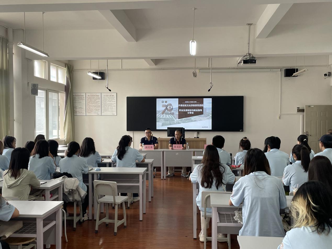 浙江海宁双鹰鸿业皮服股份有限公司董事长陈文江校友分享了自己从外语专业学生到行业精英的蜕变过程,详细阐述了在职场中如何聚焦个人的专长和特点、有效发挥外语类人才的专业优势,强调了持续学习、勇于挑战自我对于职业发展的重要性。浙江海宁优微装饰材料有限公司总经理陆宏勇校友分享了自己的创业经历,结合公司经营管理经验,就如何提升个人竞争力、选择合适的职业路径等方面给出了宝贵的建议。两位校友鼓励在场同学要珍惜在校学习的机会,敢于设定目标,勇于追求梦想,不断积累专业知识和实践经验,为未来的职业生涯打下坚实的基础。